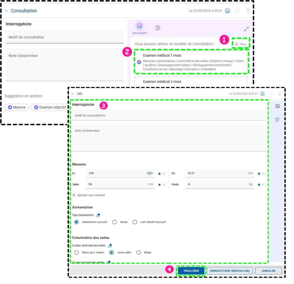 (1) Démarrez une consultation et cliquer sur « Plus » pour ouvrir la liste des modèles